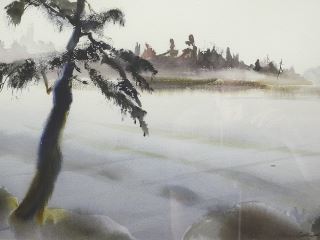 Watercolour signed Stephanie Quainton Steel, 13 1/2" x 20 1/4", "Looking Up The Inlet".
