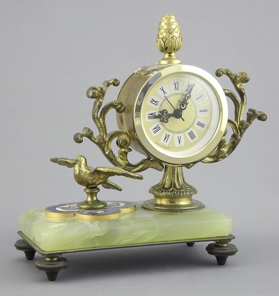 French Champleve Enamel & Onyx Clock Garniture, 5 5/8"h, Clock Replaced.