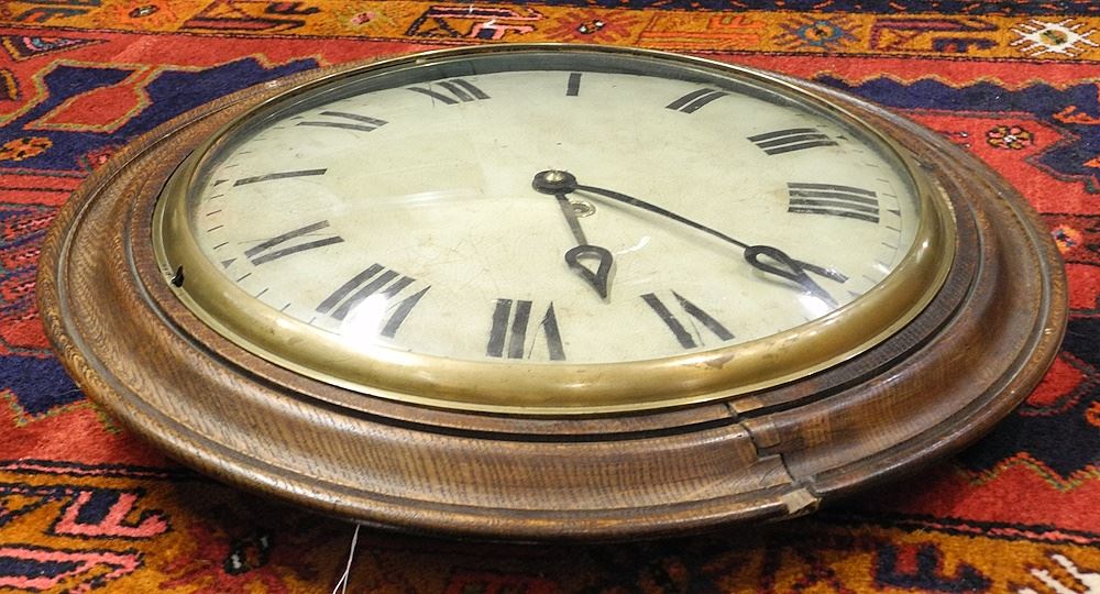 LOT 114 Antique Wall Clock with Brass Movement, 22 3/4" Diameter. Estimate: $100 - $200 Sold For: $60 Auction Date: Tuesday, January 28 2025 at 4:00 PM