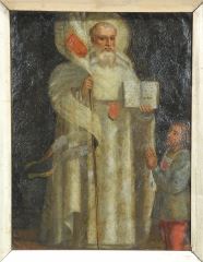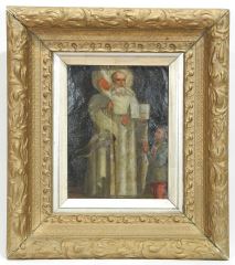 LOT 11 Antique Oil on Copper 10 1/4" x 7 5/8", "Saint with Attendant". Estimate: $150 - $250 Sold For: $225 Auction Date: Tuesday, January 28 2025 at 4:00 PM