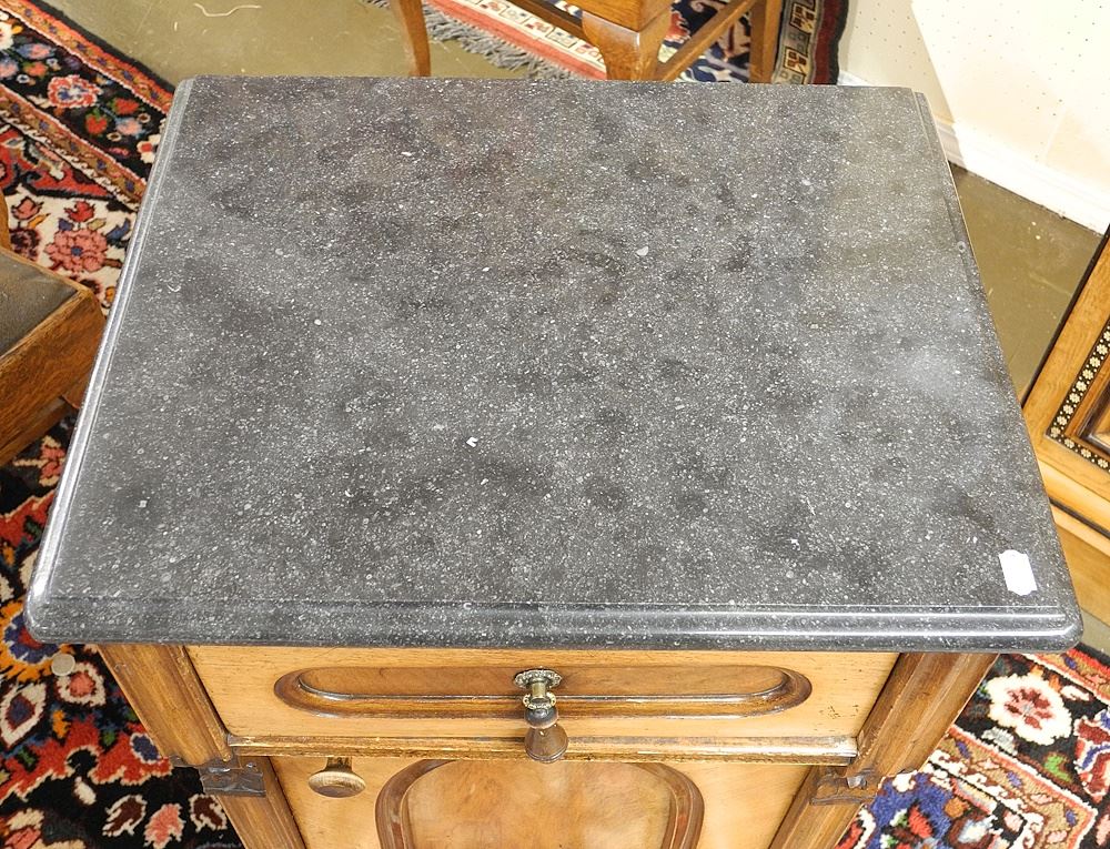 European Walnut Marble Topped Bedside Cabinet, 32 1/2"h.