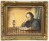 19th C. Burl Wood Snuff Box with Hand Painted Portrait
