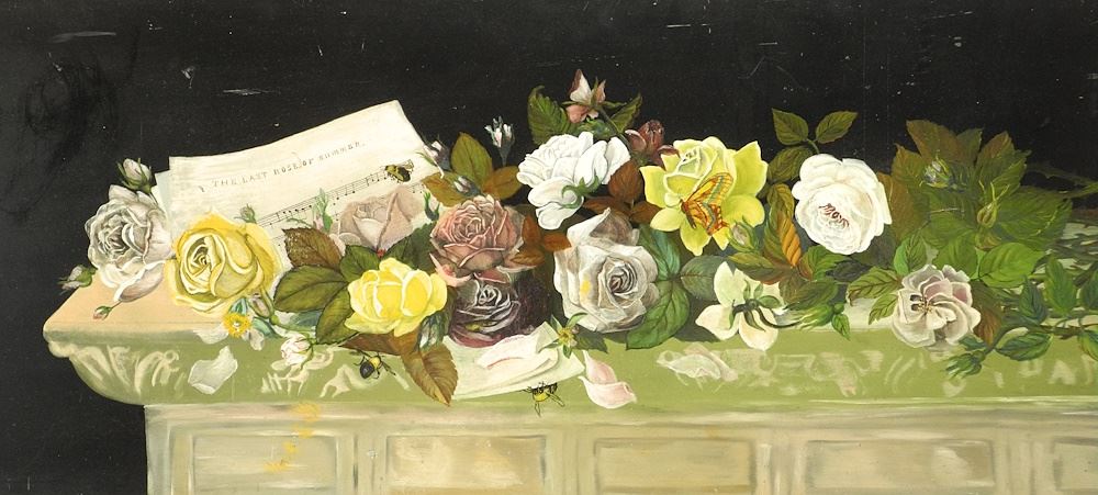 Oil on Board signed W. Peden, 17" x 39 1/4", "The Last Rose of Summer".