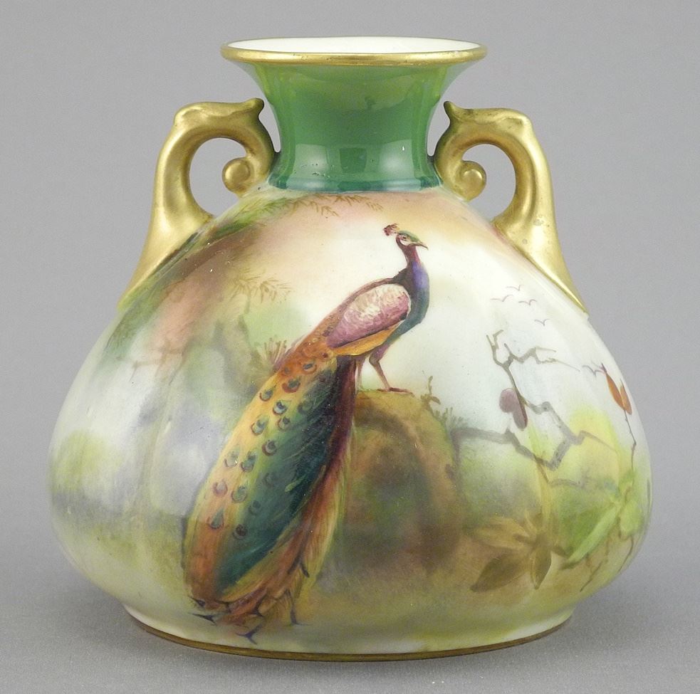 LOT 183 Royal Worcester China Peacock Vase, 3 3/8"h, Base Monogrammed. Estimate: $50 - $60 Sold For: $180 Auction Date: Tuesday, January 28 2025 at 4:00 PM