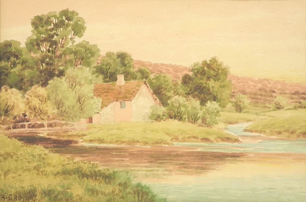 Pair of Watercolour signed R. Grey 07', 6 1/4" x 9 1/4", "Country Scenes".