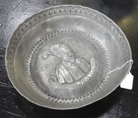 Pewter Bowl with Portrait Interior, "JO.ZD.SR.GV.MB".
