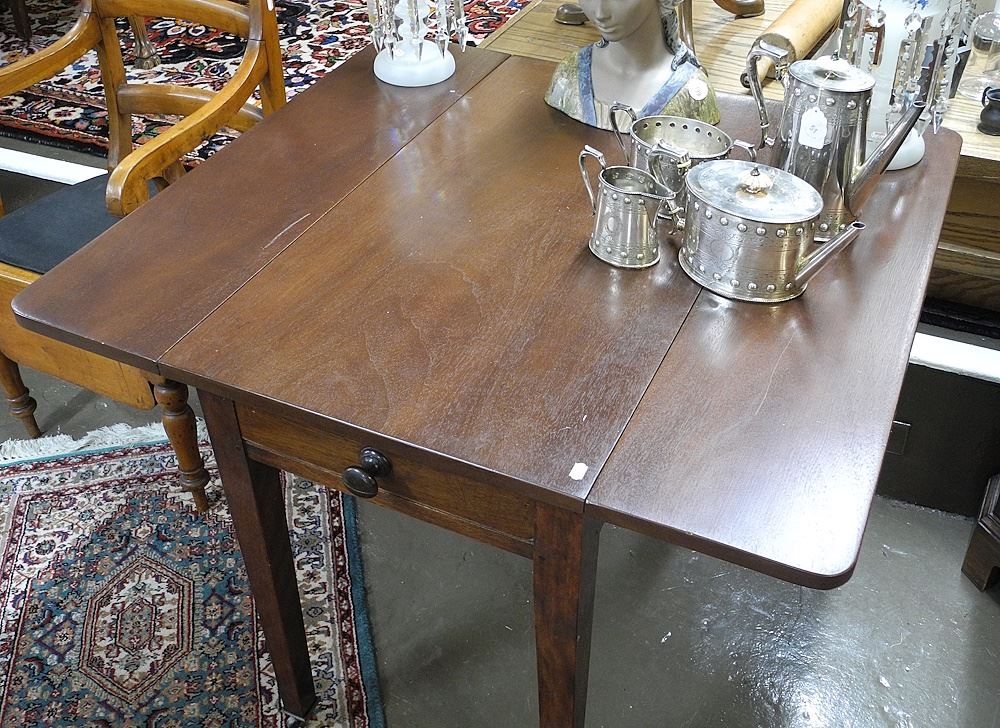 Mahogany Drop Side Table with Long Drawer, 29 1/2"h.