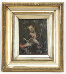 LOT 12 Antique Oil on Copper, 9 1/4" x 7 3/8", "Portrait of a Saint Reading". Estimate: $100 - $200 Sold For: $250 Auction Date: Tuesday, January 28 2025 at 4:00 PM