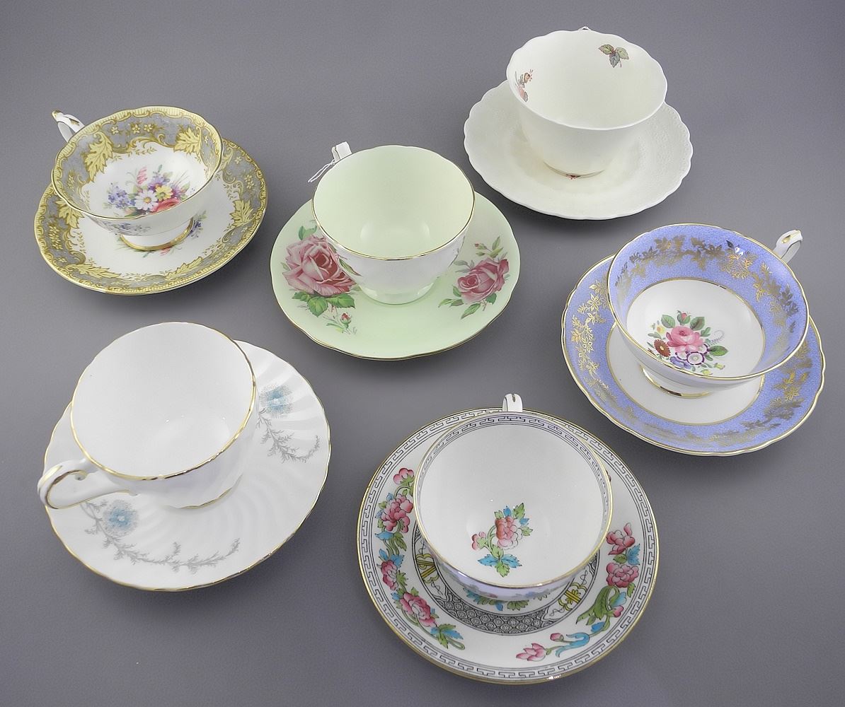 6 Teacups and Saucers: Aynsley, Paragon,etc.