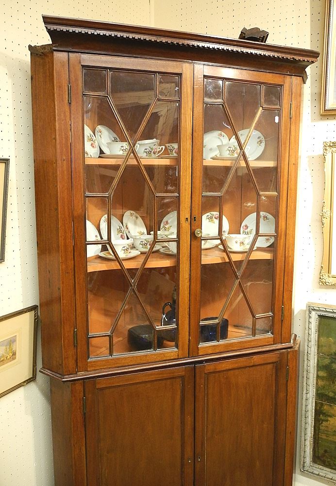 19th C. Mahogany Astragal Glazed Corner Cabinet, 38 1/2"w.