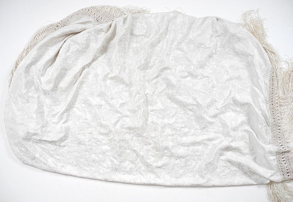 LOT 119 Chinese Silk Piano Shawl with Long Fringes Approximately 50" x 50". Estimate: $150 - $200 Auction Date: Tuesday, January 28 2025 at 4:00 PM
