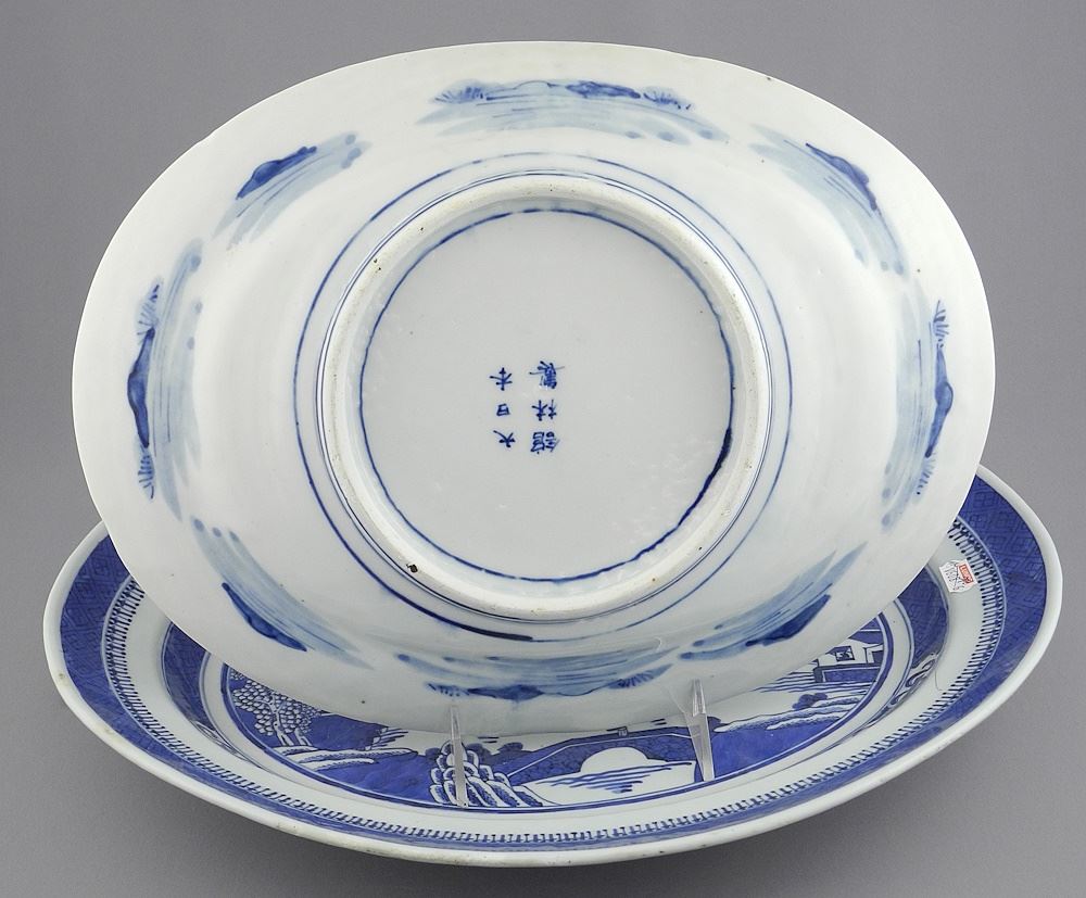 Two 19th C. Chinese Export Porcelain Blue & White Oval Platters, 13 3/4" & 16 1/8"w.