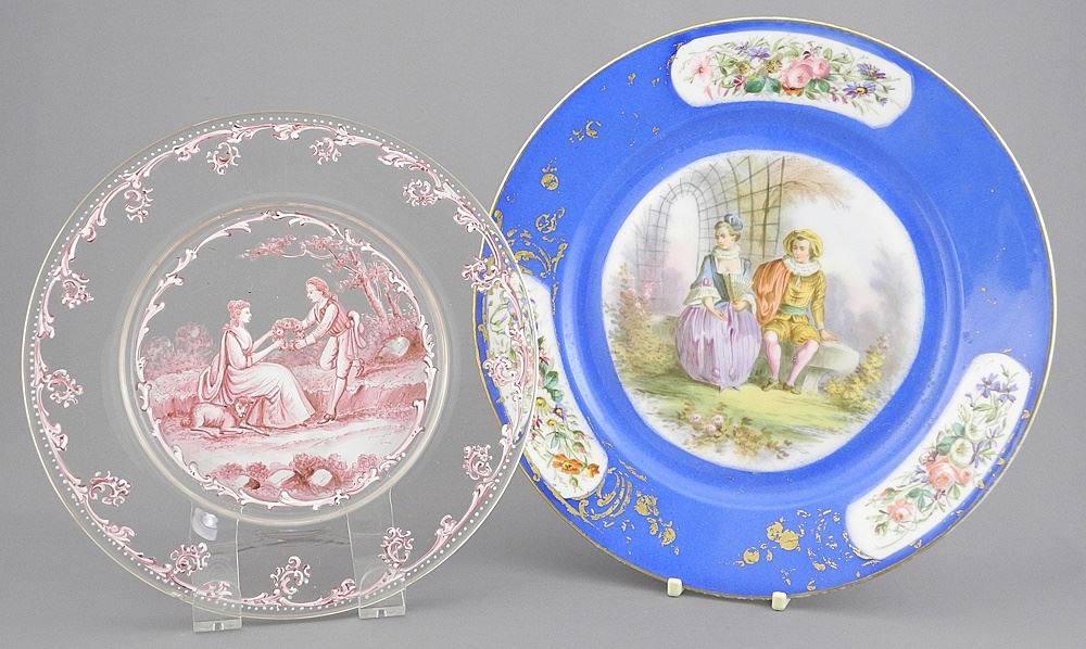 LOT 63 4 China Glass Wares: Pair "Crowne" (7 7/8"h) Vases / Sevres-Style Dish / Enameled Glass Dish. Estimate: $60 - $100 Sold For: $15 Auction Date: Tuesday, January 28 2025 at 4:00 PM