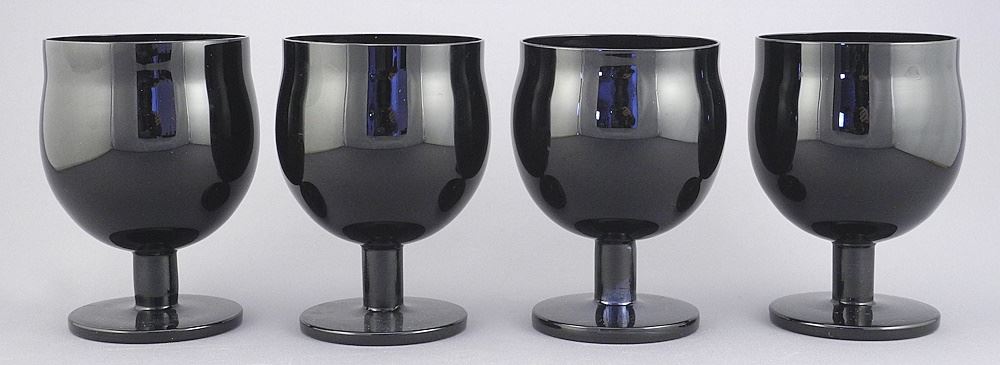 LOT 30 8 Black/Deep Ruby Glass Goblets 4 3/8". Estimate: $60 - $100 Auction Date: Tuesday, January 28 2025 at 4:00 PM