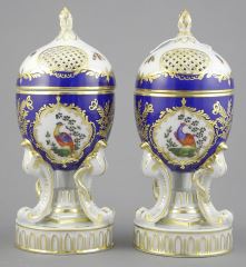 LOT 21 Pair of Dresden Porcelain Potpourri Urns, 7"h. Estimate: $60 - $100 Sold For: $120 Auction Date: Tuesday, January 28 2025 at 4:00 PM