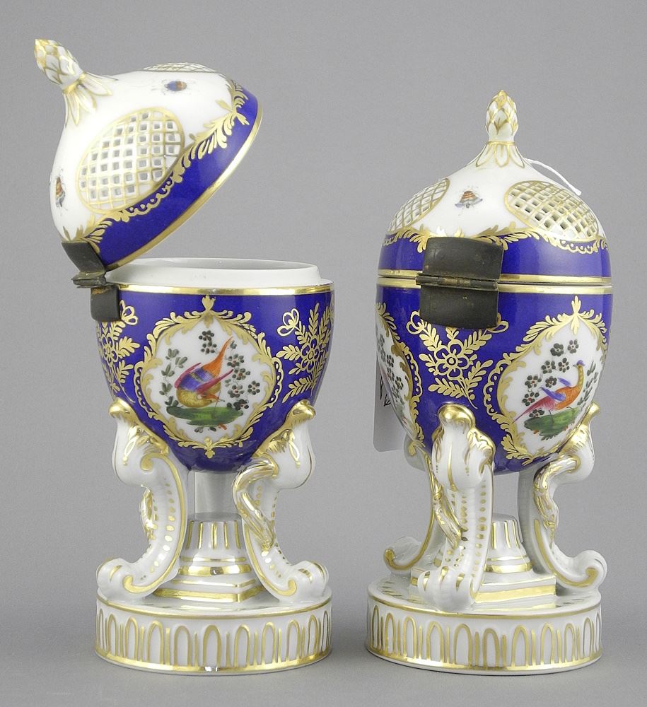 Pair of Dresden Porcelain Potpourri Urns, 7"h.