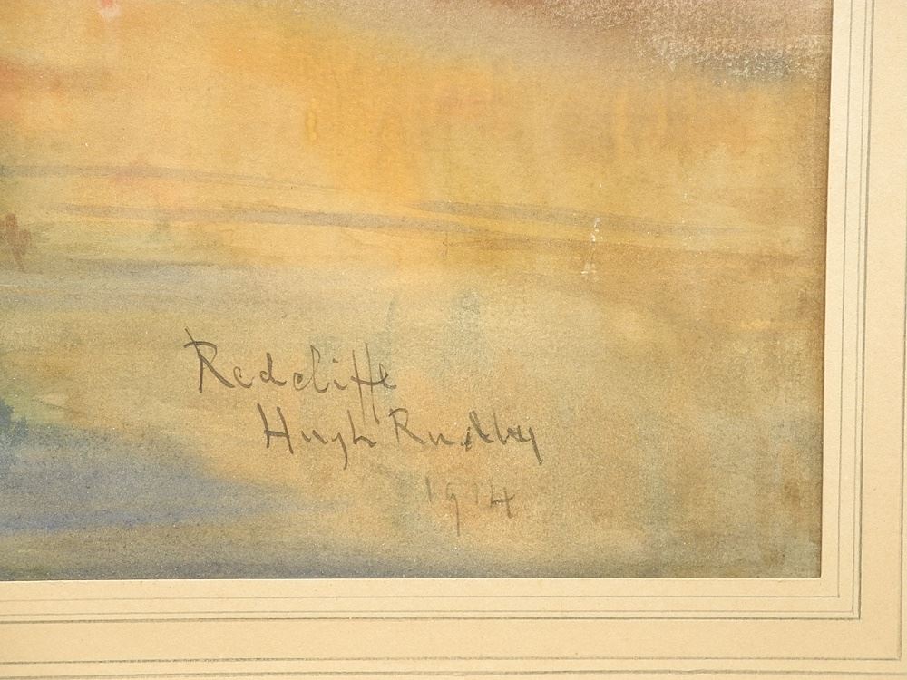 Watercolour signed Hugh Rushly? 1914 , 11 3/4 x 18 1/4", "Riverside Vista ".
