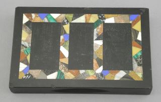 LOT 105 19th C. Pietra Dura Engraved Triptych Paper Weight, 5 5/8"w (base noted). Estimate: $100 - $150 Sold For: $110 Auction Date: Tuesday, January 28 2025 at 4:00 PM