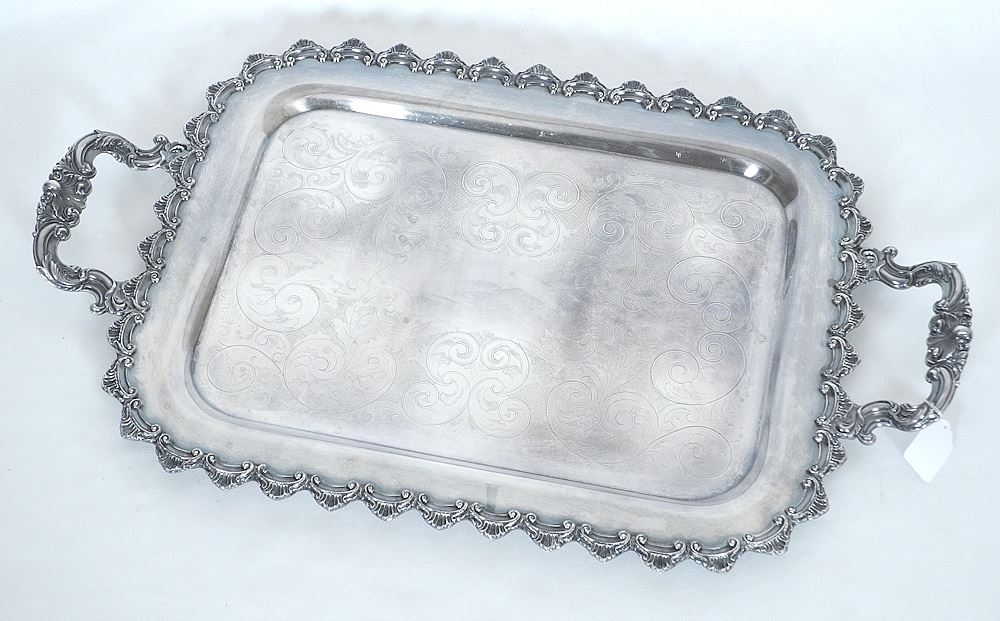 LOT 174 Two Silver Plated Trays, 26" & 27 1/8"W. Estimate: $100 - $150 Auction Date: Tuesday, January 28 2025 at 4:00 PM