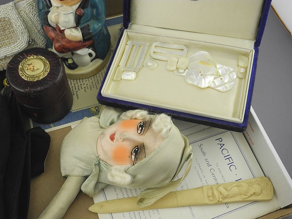 Collection of Antique Sundries: Hanger/Passenger List/Gloves/Cup & French Purse.
