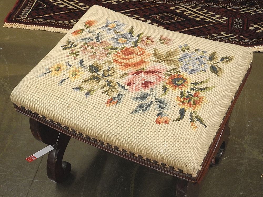 Vander Ley Brothers Michigan \ Mahogany Trestle Footstool, 15 3/8"h