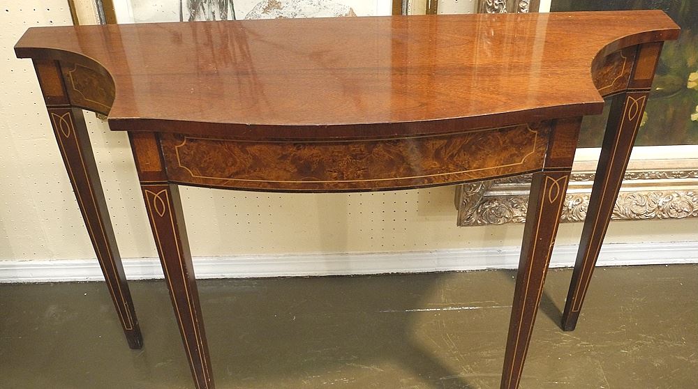 LOT 145 Inlaid Mahogany Console Table, 30" h. Estimate: $80 - $120 Sold For: $190 Auction Date: Tuesday, March 25 2025 at 4:00 PM