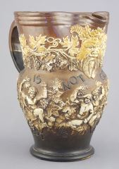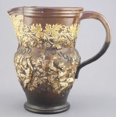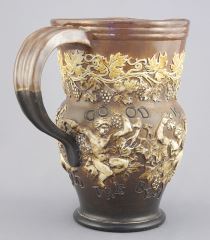 LOT 18 Royal Doulton Bacchanalian Stoneware Motto Ware Pitcher, 7 1/4"h. Estimate: $60 - $100 Sold For: $70 Auction Date: Tuesday, March 25 2025 at 4:00 PM