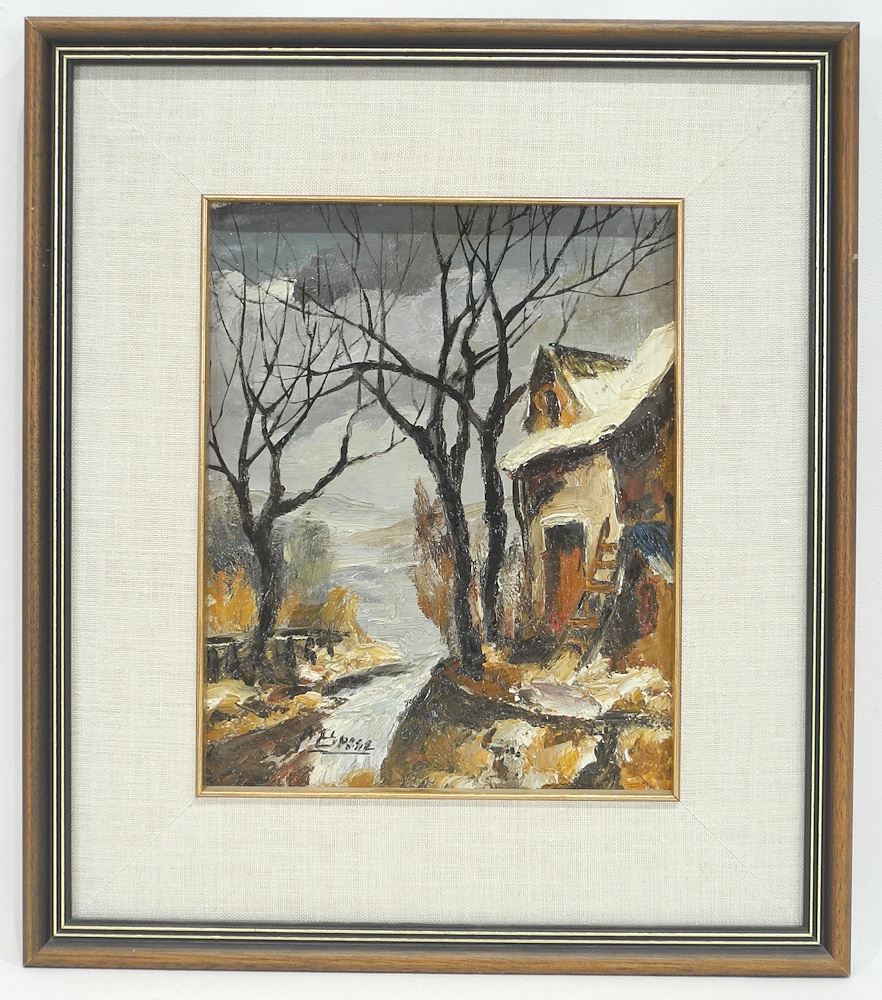 Pair of Oil on Canvas signed A. (Andre Raymond) Besse, 10 x 8 1/4" , "Trees & Buildings".