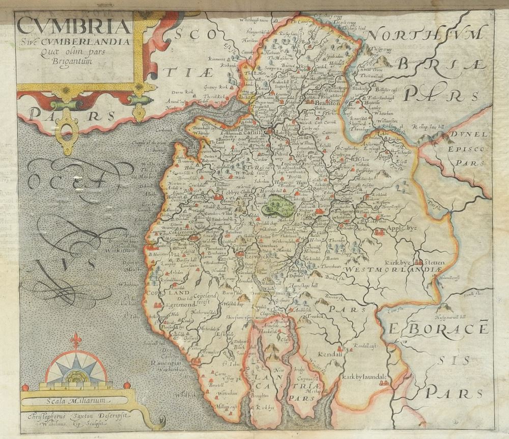 Antique Map: "Cumbria", Saxton/Kip 1637, 11 3/4" x 15 3/4".