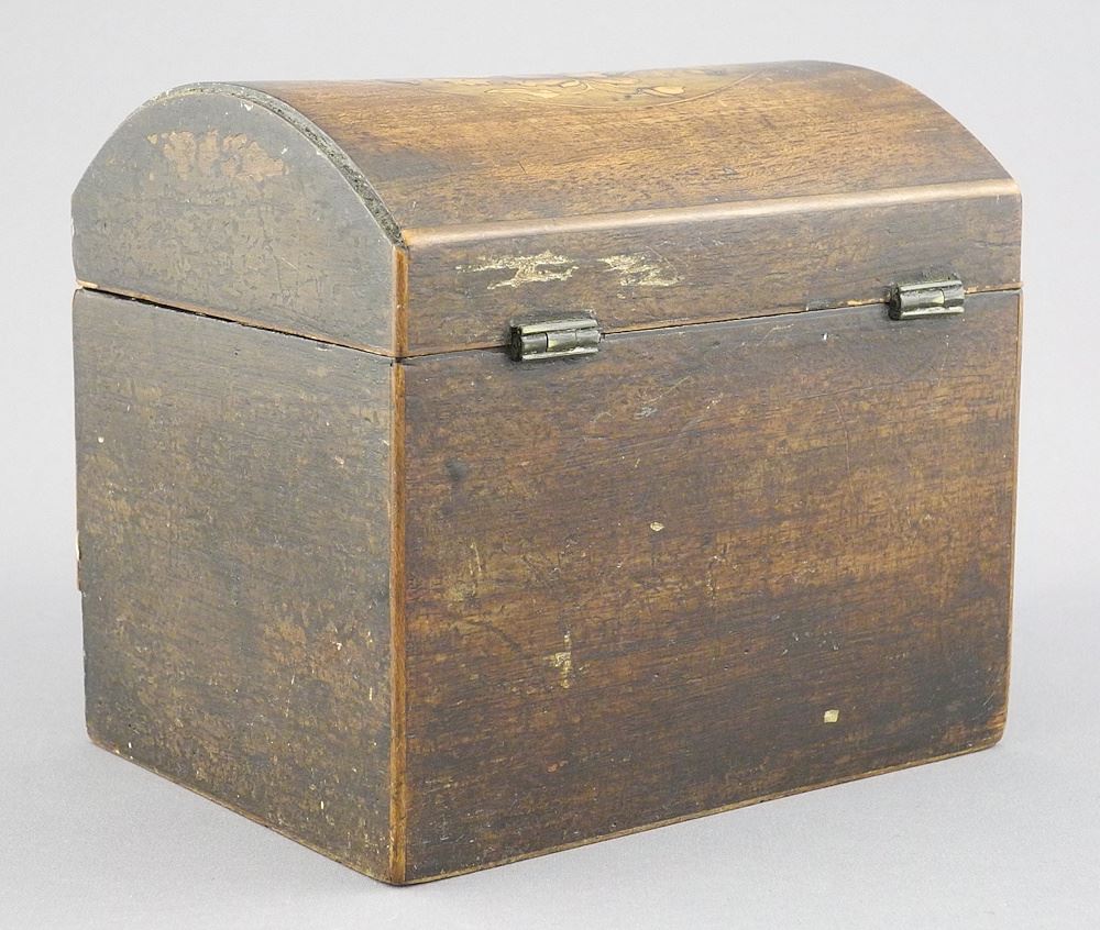 LOT 172 19th C. Dome Top Inlaid Tea Caddy, 4 3/8"h. Estimate: $50 - $60 Sold For: $90 Auction Date: Tuesday, March 25 2025 at 4:00 PM