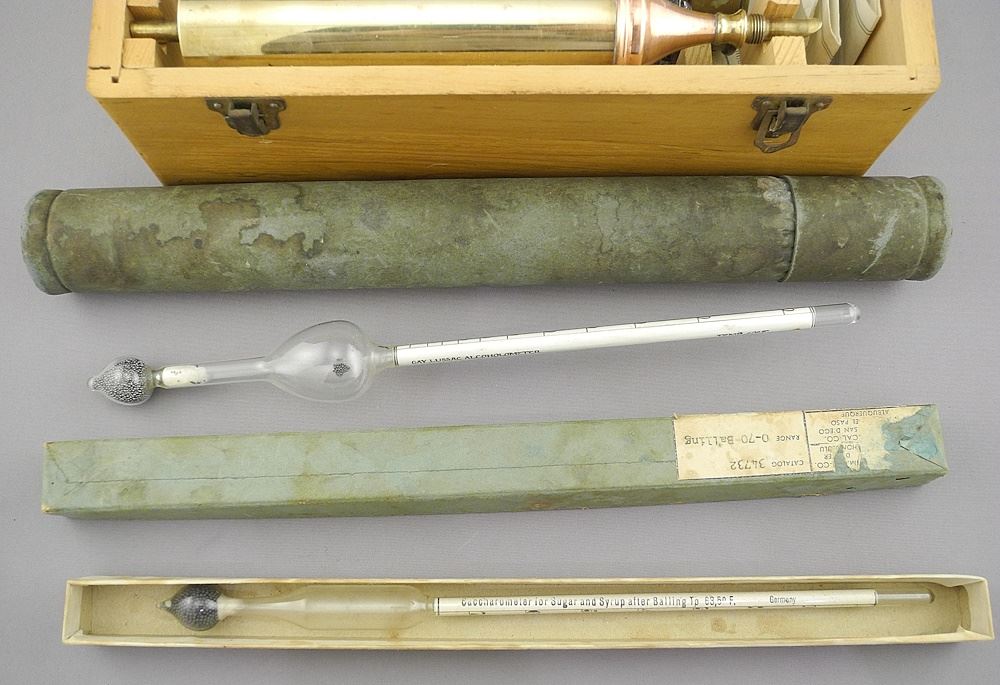 Vintage Italian Brass & Copper Alcohol Meter with Original Box (as found).