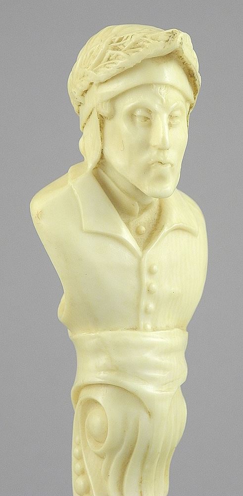 LOT 162 19th C. "Dante" Wax Seal Handle, 4 1/2"h, on stand, NO EXPORT. Estimate: $150 - $300 Sold For: $110 Auction Date: Tuesday, March 25 2025 at 4:00 PM