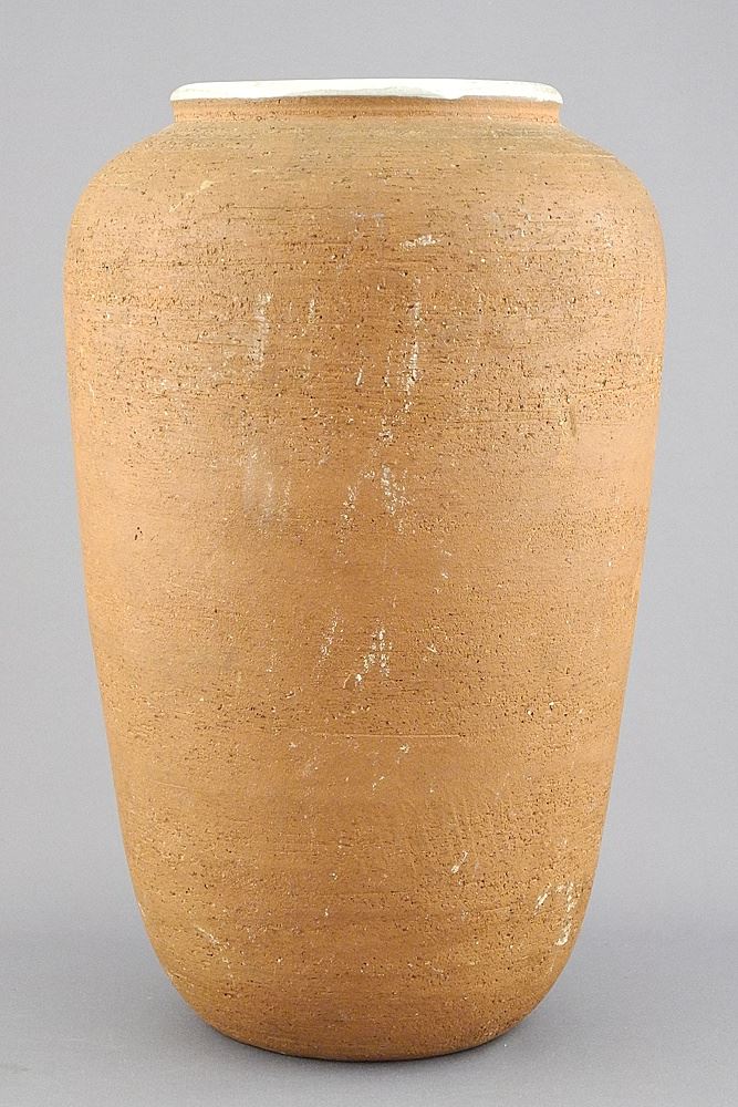 Terra Cotta Vase with White Glazed Interior, 10"h.