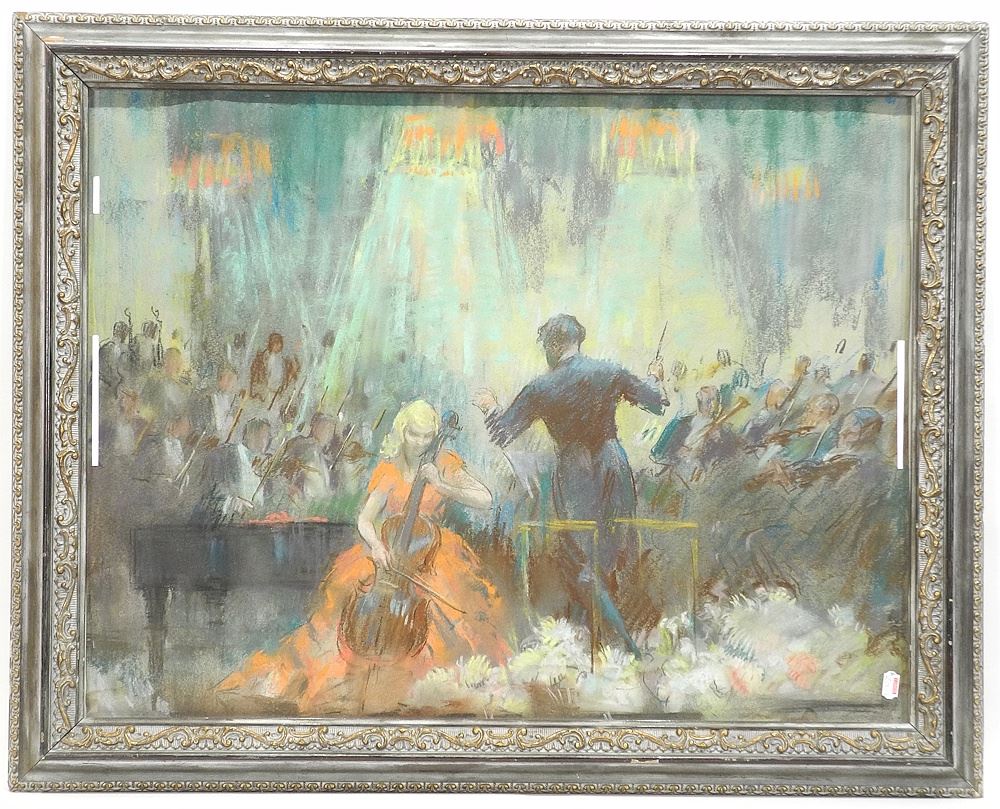 Unsigned Pastel on Paper, 19 1/4 x 25 1/4", "Cellist & Conductor".