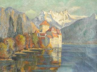 LOT 149 Oil on Canvas Monogrammed M.R.1930, 18" x 24", "Chillon Castle, Lake Geneva". Estimate: $300 - $500 Sold For: $350 Auction Date: Tuesday, March 25 2025 at 4:00 PM