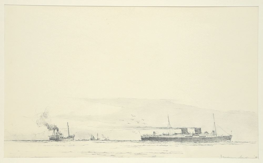 Drawing signed I. (Ian) MacKinnon Pearson, 8 1/4" x 13 7/8", "Passing Ship".