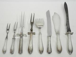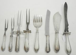 Collection of Sterling Silver Handled Carving Sets & Fish Servers, 8 1/2 - 14 1/4"L.