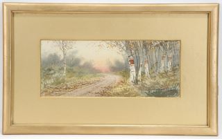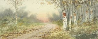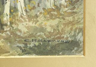Watercolour signed C.R.Raymond, 4 1/8 x 10 1/8", "Roadside Birches".