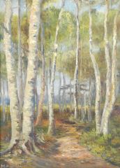 LOT 86 Two Oil on Canvas signed M.A. (Mary Allison) Doull, 30 x 22" & 4 3/8 x 3 1/2", "Birch Tre Estimate: $100 - $200 Sold For: $110 Auction Date: Tuesday, May 27 2025 at 4:00 PM