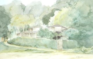 Watercolour signed E. (Eileen) Beaton, 7 x 11", "Kawan Island".
