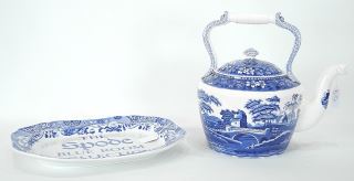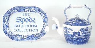 LOT 56 Spode "Blue Room" Platter (14 3/8") & "Tower" Teapot. Estimate: $60 - $100 Auction Date: Tuesday, May 27 2025 at 4:00 PM