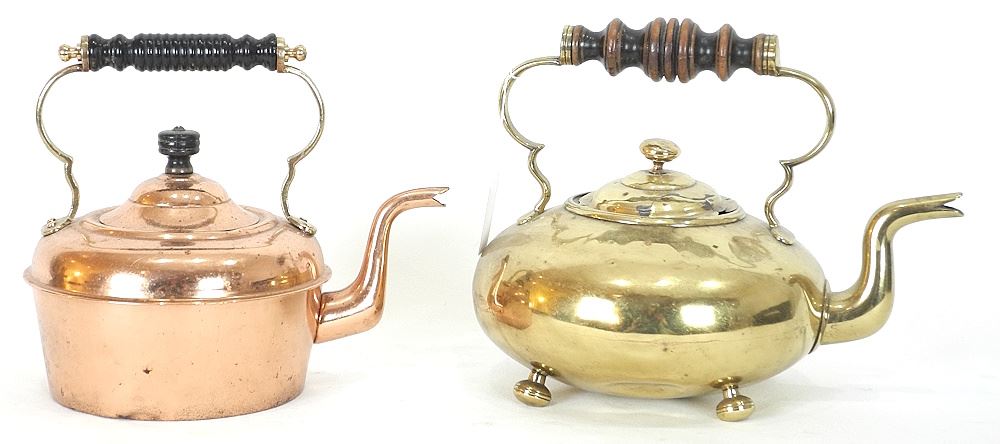 LOT 40 Antique lot of Brass & Copper; Pair of Andirons and Two Kettles Estimate: $50 - $100 Sold For: $25 Auction Date: Tuesday, May 27 2025 at 4:00 PM