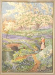 Watercolour signed G. Hammond (Gertrude E.), 11 x 8", "Picking Flowers by the Stream".