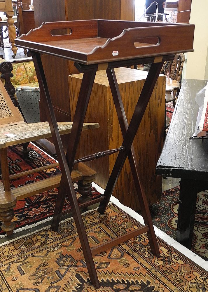 LOT 96 Mahogany Butlers Tray Table, 41 1/4" Estimate: $120 - $180 Sold For: $130 Auction Date: Tuesday, May 27 2025 at 4:00 PM