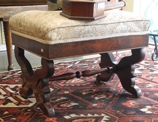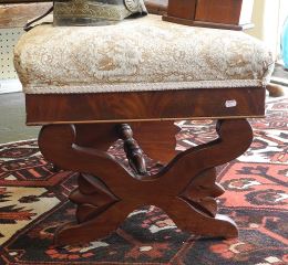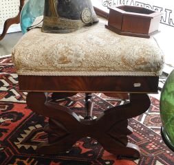 LOT 4 Mahogany Upholstered Footstool. Estimate: $50 - $80 Sold For: $100 Auction Date: Tuesday, May 27 2025 at 4:00 PM