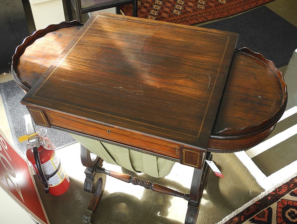 Regency Banded Rosewood Work Table, 29 5/8"h (restoration noted).