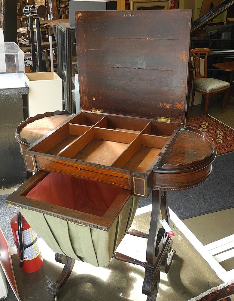 LOT 47 Regency Banded Rosewood Work Table, 29 5/8"h (restoration noted). Estimate: $100 - $200 Sold For: $90 Auction Date: Tuesday, May 27 2025 at 4:00 PM