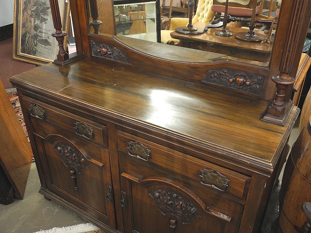 19th C. Scottish Sideboard with Carved Features, 68"h.