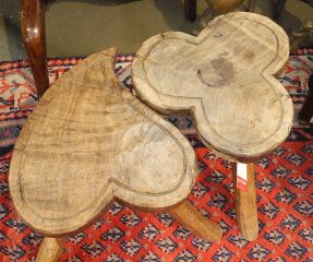 Two Spanish Club & Heart Joint Stools, 12 3/8"h.