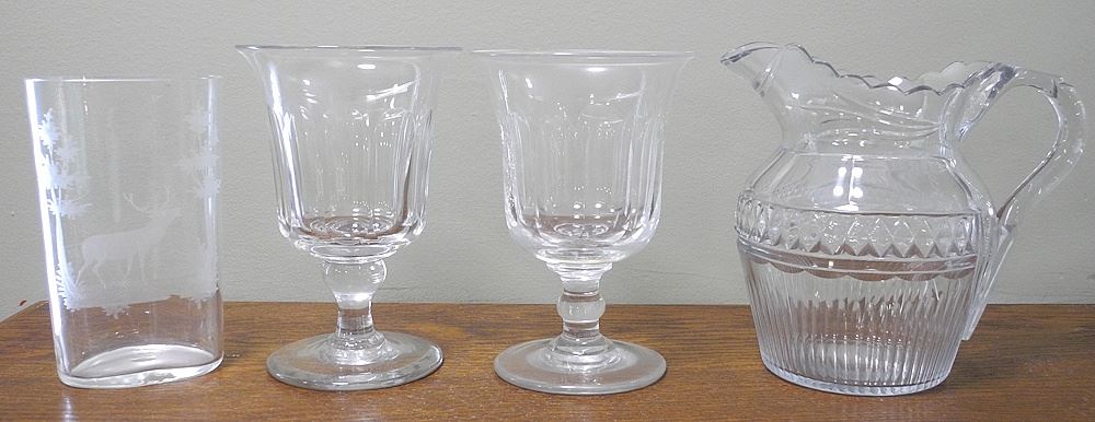 LOT 191 Lot of Etched and other Glassware Including Pitcher, Ruby Flashed, etc (12 pcs) Estimate: $80 - $120 Sold For: $90 Auction Date: Tuesday, May 27 2025 at 4:00 PM